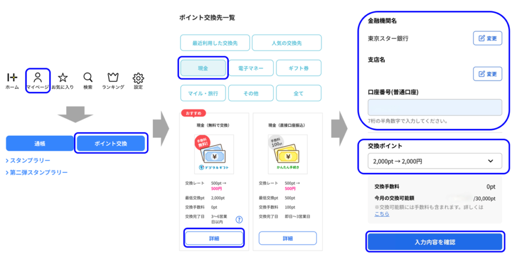 貯めたポイントの交換手順