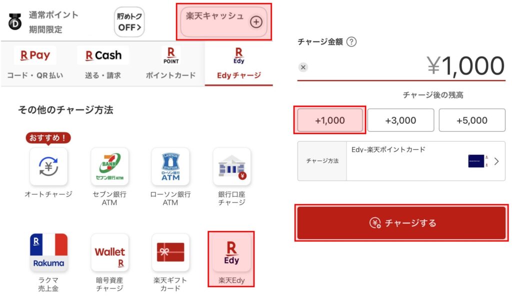 4. 楽天Edyから楽天キャッシュへチャージ