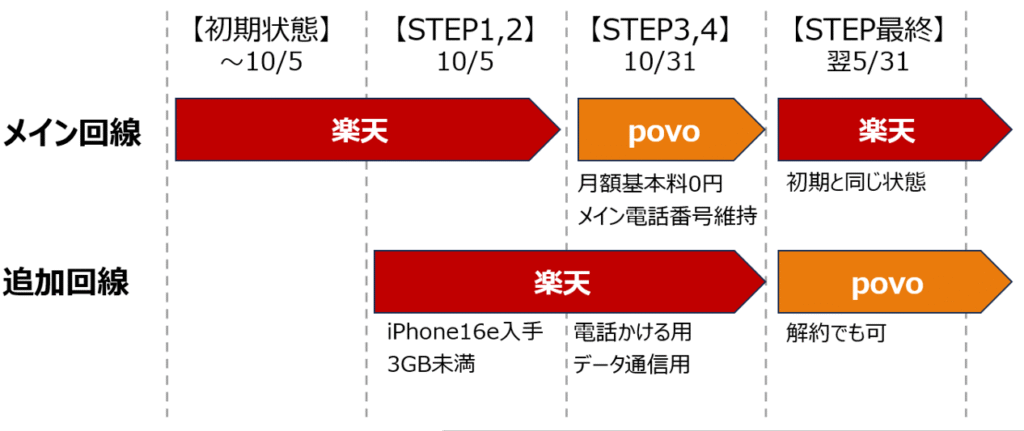 【STEP最終】メイン回線を楽天→povoへMNP、追加回線をpovo→楽天へMNP /半年後以降