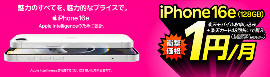 先日、楽天モバイルで「乗り換えや新規契約でiPhone16eが2年間、月額1円で手に入る」という衝撃キャンペーンが始まりました!